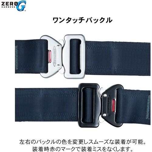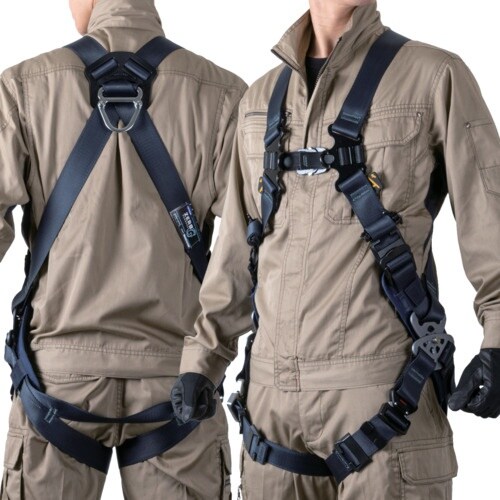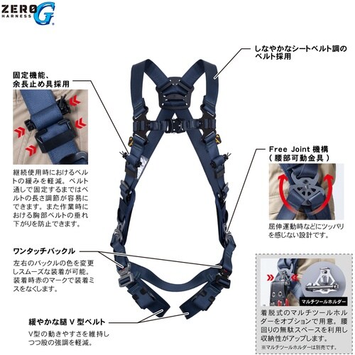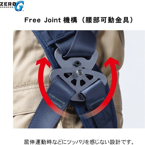 装着ストレスZERO:Free Joint機構により、屈伸作業などにツッパリ感を感じません。しなやかなシートベルト調の採用により、装着性が向上。工場、建設、土木、鉱山、橋梁工事、その他一般高所作業用。 |