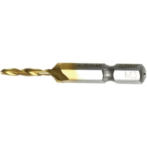 タップとドリルがこれ1本でOK、ドリル穴あけ、雌ネジ切り、簡易バリ取りが一連の作業でできます。ドリル穴あけ、雌ネジ切り、簡易バリ取りが一連の作業でできます。