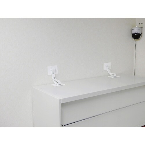 ゴム製ベルトが揺れの衝撃を吸収し壁に加わる力を軽減します。2段階でベルトの長さを調整可能です。 |
