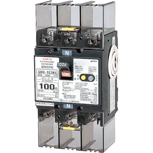 テンパール テンパール工業 GBU−103KC 100A 30MA ソーラーヨウ(3E) 単3中性線欠相保護付漏電遮断器 分電盤協約形サイズ 過電圧検出リード線付 U103KC1030V 1個