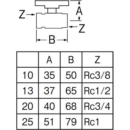 呼び径A:Rc1 | 呼び径:25 | B(mm):79 | A(mm):51 | 最高使用圧力:常温の水・油=2.8MPa | 最高使用温度:100…