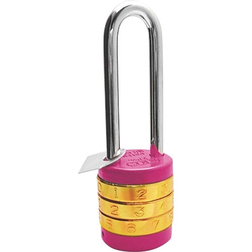 解錠番号は予め設定されています。鍵なしで番号を合わせると解錠できます。番号は固定式で変えられません。吊長なので取付範囲が広いです。バッグやポストやロッカーなどの施錠に。