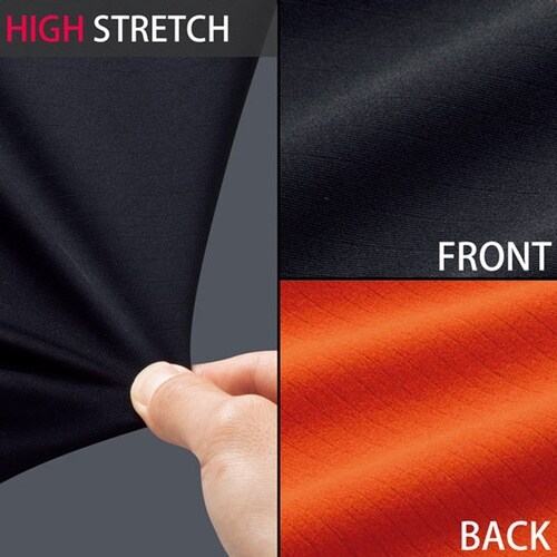 動きやすさと防寒・防風性に優れたハイブリット素材を採用しました。伸縮性に優れたニットと防風フィルム、フリースを貼り合せた、ハイブリッド素材です。寒冷地作業に。 |