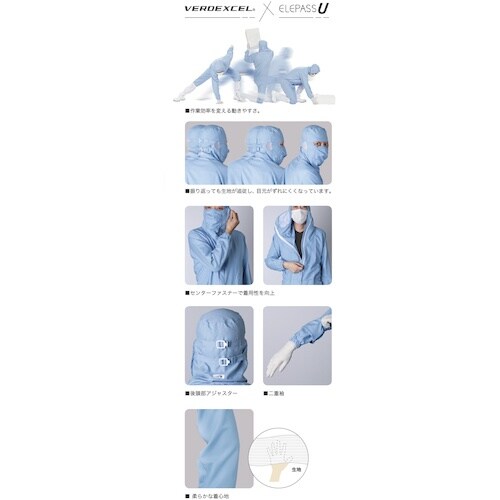 ミドリ安全 ベルデクセル×エレパスU フード・マスク一体型つなぎ服 VEYS140B ブルー SS VEYS140BSS 1着
