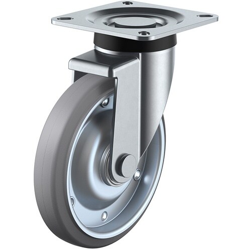 ユーエイ プレート式 自在 キャスター グレーゴム 車輪径200mm SILENTタイプ JF型 取付寸法115×115(105×105) WFJF200G 1個