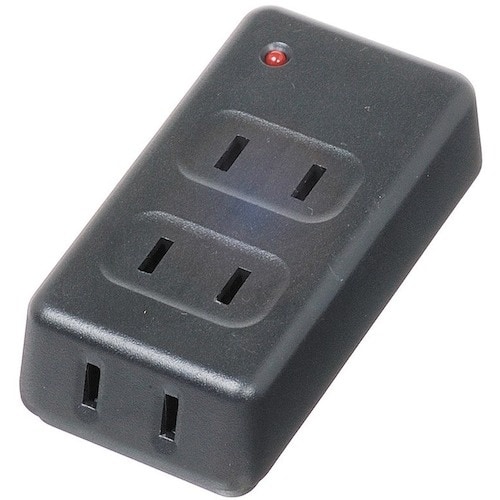 幅の狭い場所での使用に最適な前面2個口・下面1個口仕様です。プラグはほこりや湿気によって発生するトラッキング火災を予防する絶縁カバー付きです。 |