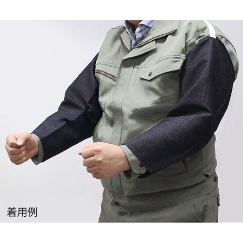燃えにくく軽量、汚れも目立たないデニム製。肩口から手首まで防護します。 |