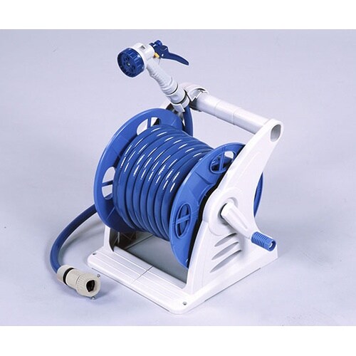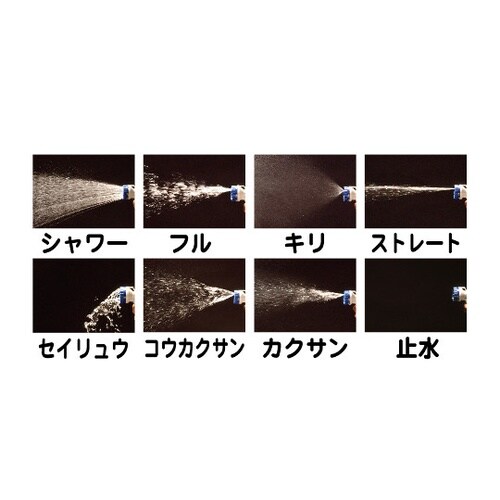 主ホースは中黒の耐寒・耐圧ホース(20m付き)を使用しています。水流を用途に合わせて8通り(シャワー、フル、キリ、ストレート、セイリュウ、コウカクサン、カクサン、止水)が選べるノズルを使用しています。 |