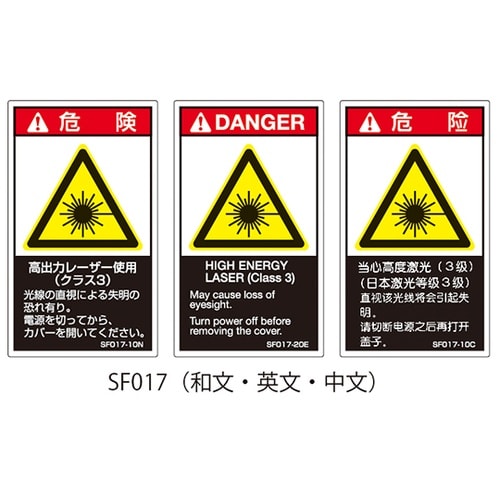 セフティデンキ SFシリーズ PL警告ラベル SEMI規格対応 和文 小 高出力レーザー使用(クラス3)1式(5枚×5シート入) A052-1019