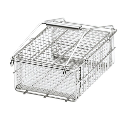 ステンフタ付き万能カゴの廉価版です。パンチング部はガード付の安全設計手づくりですので、若干の個体サイズ差があります |
