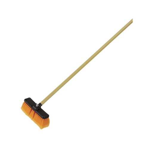 ブラシの毛先はソフトな先割れタイプなので、外壁のモルタルやタイルの目地、雨戸の塗装を傷めません。軽いので高齢者や女性でも扱いやすく作業が楽です。ブラシの向きは用途に応じてタテヨコどちら向きでも取り付け |