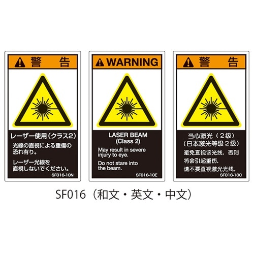 セフティデンキ SFシリーズ PL警告ラベル SEMI規格対応 中文 小 レーザー使用(クラス2)1式(5枚×5シート入) A052-1124
