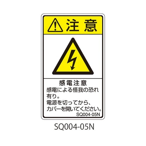 セフティデンキ SQシリーズ 注意ラベル 縦型 和文 感電注意 1式(5枚×5シート入) SQ004−05N A052-1137