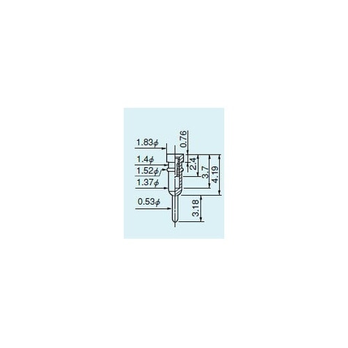 材質:内部コンタクト:ベリリウム銅 ボディ:黄銅メッキ仕様:コンタクト:金 ボディ:スズ適合オスピン径(φ):0.45−0.6オスピン挿入深さ:3.7プリント板取付穴径(φ):0.6定格電流:1A接触 |