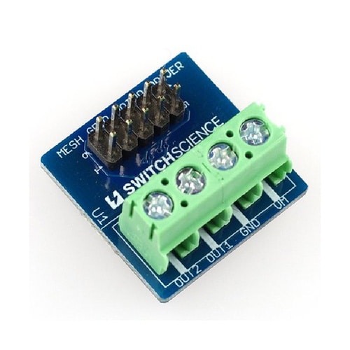 MESH GPIOタグ用の拡張ボードです。MESH(メッシュ)はソニー製のブロック形状のツールで、様々な玩具や装置を組み立てることができます。本ボードにより小型のDCモータ1個をコントロールできます。 |