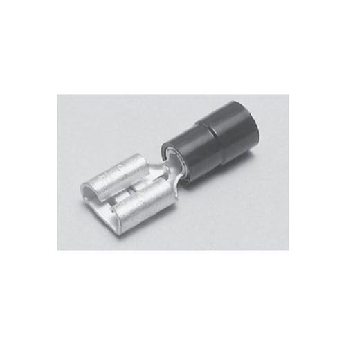 端子と絶縁体との間に銅パイプが挿入されています。その銅パイプは長く、圧着した際、電線被覆を銅パイプでグリップします。 |