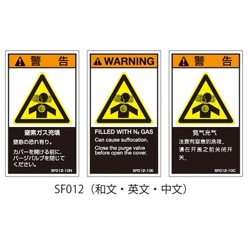 セフティデンキ SFシリーズ PL警告ラベル SEMI規格対応 英文 小 窒素ガス充填 1式(5枚×5シート入) A052-1523