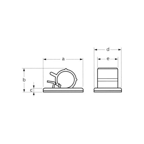 ナイロン66製の一体成型品に両面テープを貼り付けています。電線束,ケーブル,コード等をはさみ、レバーを押し込むだけでロックが出来ます。清浄で乾いた表面であれば簡単に取り付けられます。パネルやシャーシヘ |