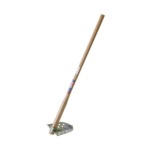 土の掘り起こし作業・畝作り作業に。ショベル鋼板使用の頭部は軽くて丈夫(炭素鋼・熱処理)で切れ味抜群。穴あきなので軽くて土離れが良い。一般的な(同じ用途の)鍬に比べ軽い。 |