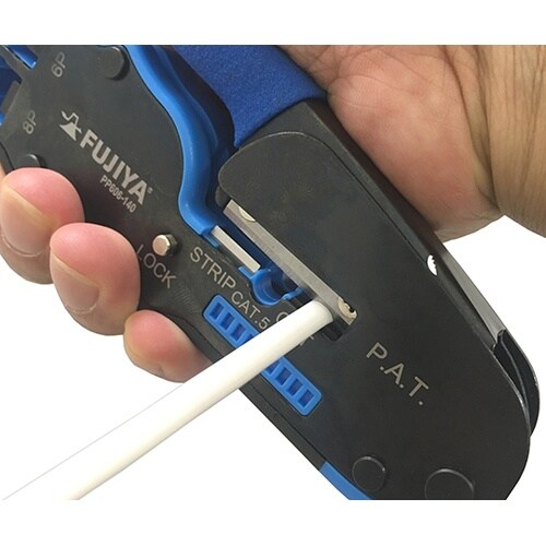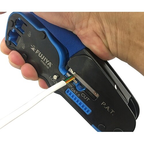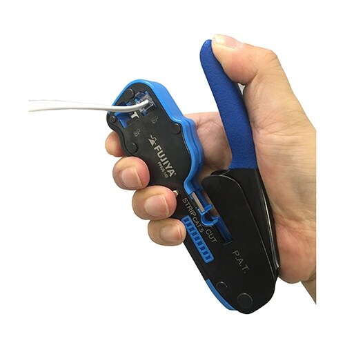 モジュラープラグの圧着作業に最適。これ一つで8P(RJ45)/6P(RJ11)圧着が可能。フラットケーブル、LANケーブル(CAT5e)の切断、皮むきも可能です。小型軽量のため、狭い場所での作業も可能 |