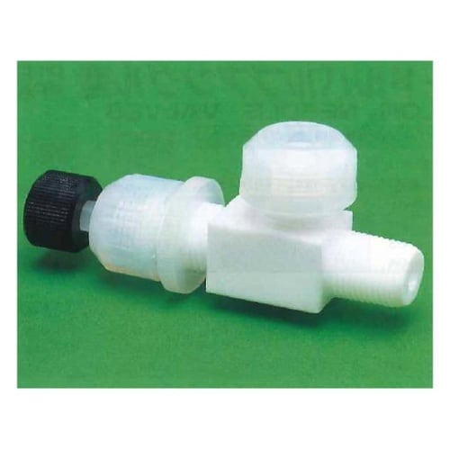 フッ素樹脂PTFE製のニードルバルブでパネル取付用ナット付です。