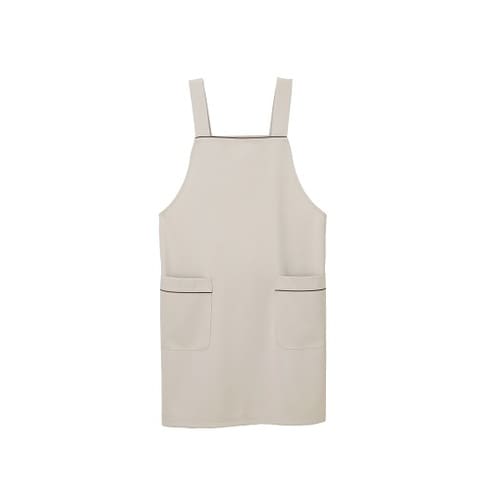 落ち着いた配色コードパイピングがシックな印象のエプロンです。透け防止フルダルポリエステル糸使いにより、極めて高い透け防止効果があります。極めて高いストレッチ性が有ります。特殊な糸使いにより、肌に触れる |