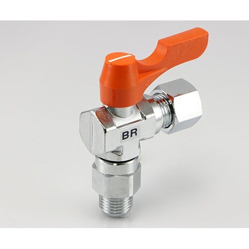 親切設計の小型ボールバルブです。リングジョイント一体型となります。ハンドルの開閉位置を変更する事も可能です。取付部が独立して回転するため、狭い箇所での接続も可能です。90度配管に適しています。 |