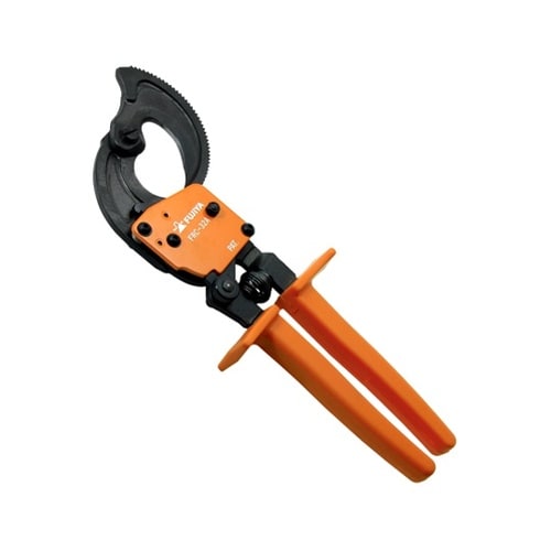 太いケーブル線の切断専用工具です切断中、万が一途中で解除する場合はストッパーを手前に引き上げるとラチェットをフリーの状態にすることが可能です |