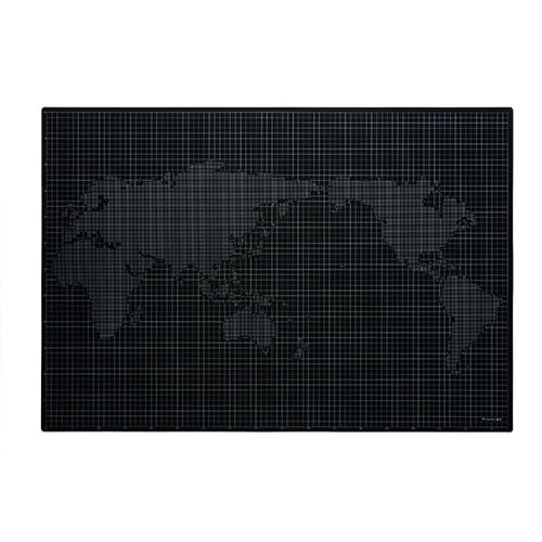 軟質+硬質+軟質の三層構造で両面使用可能なカッターマット。1cm単位のグリッド印刷付。片面(黒)は世界地図を模したドット入。片面(グレー)は落ち着きのあるライトグレー。目にやさしいホワイト印刷。 |