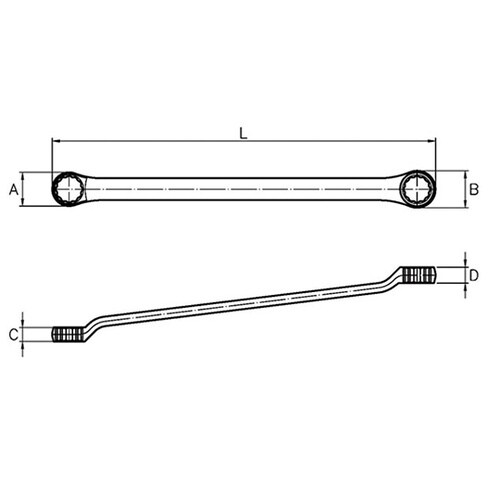 ヘッド部がコンパクトなメガネレンチ。ミラー仕上げ。オフセット部がコンパクトで短く狭い場所でも使いやすい。 |