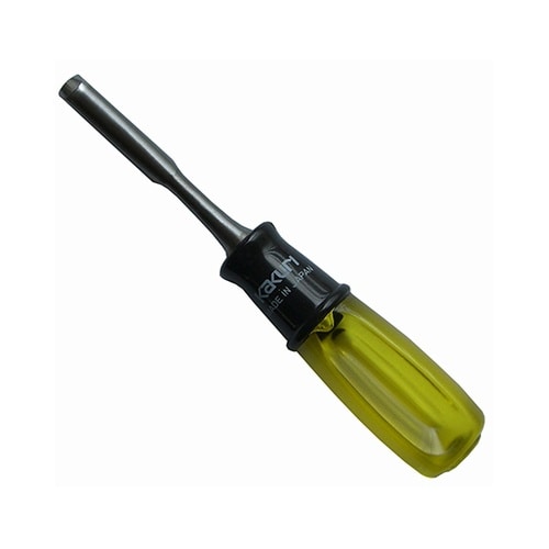 木彫細工で使えるコンパクトなのみです。日本生まれで欧州育ちのオリジナルのみです。ハンドルには、ハンマーでたたける特殊プラスチックを使用し、刃先には刃物用特殊鋼を使用、本刃研ぎを施し抜群の切れ味です。 |