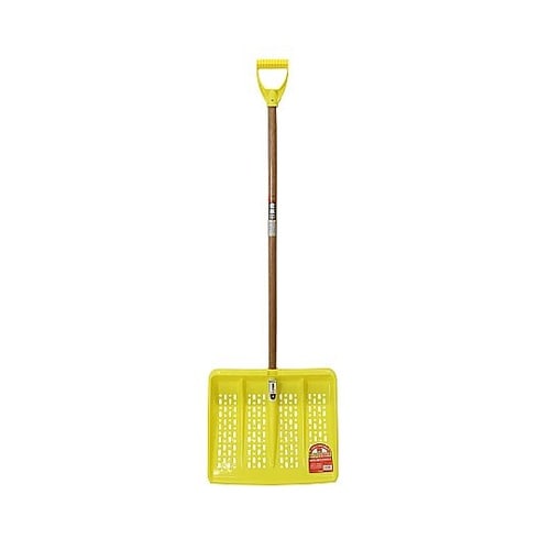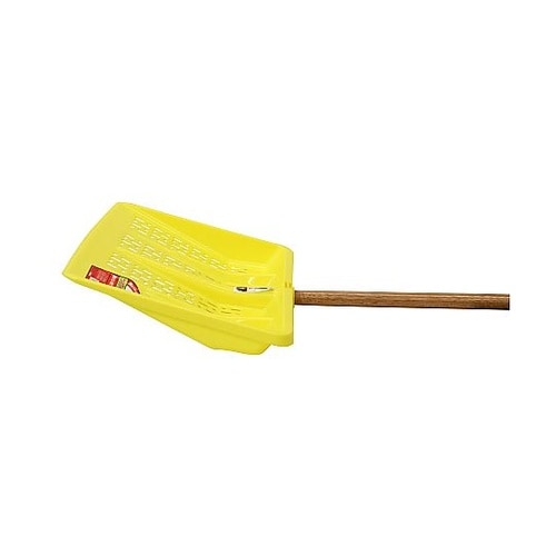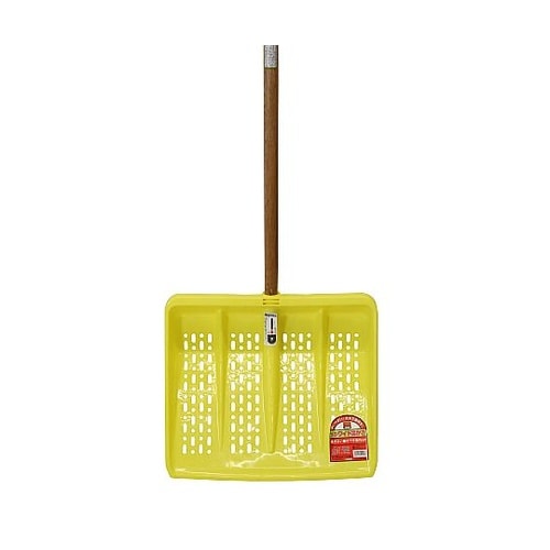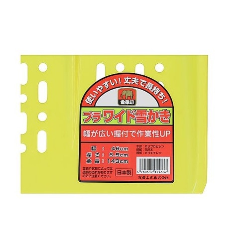 降り始めの新雪の除去作業に最適、ワイド幅でグリップ付の軽いプラ雪かき。降り始めの新雪、軽い雪の除去作業に最適。本体は軽量なプラスチックを使用し、グリップ付きのため安定感抜群、長時間の作業にも疲れにくい |