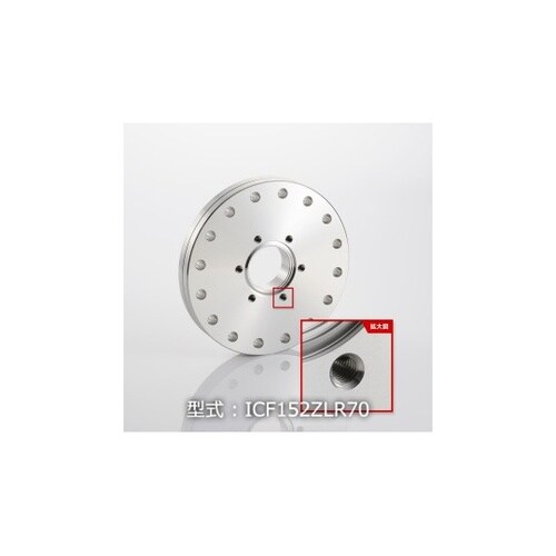 超高真空対応の規格フランジです。シール部分をナイフエッジ形状に施しており、メタルガスケットを向い合せたフランジの間に設置し、それをナイフエッジ部で挟み込み、外側からボルトで締め付けることにより気密性を