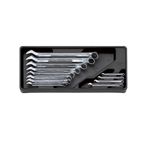 十二角タイプのコンビネーションレンチです。樹脂成形トレイ付コンビネーションレンチ12本組セットです。 |