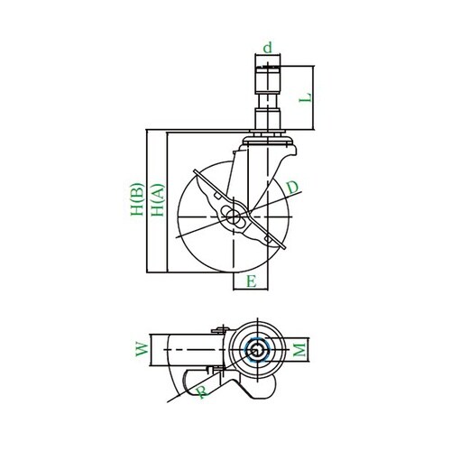 走行性、耐荷重を備えた一般的な差込み式キャスターです。旋回部の構造を二段構造にする事で、スムーズな旋回が可能になります。ストッパーにより車輪の回転をロックすることが出来ます。 |