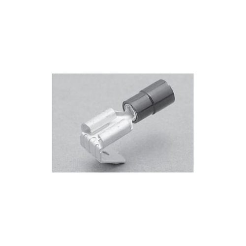 端子と絶縁体との間に銅パイプが挿入されています。その銅パイプは長く、圧着した際、電線被覆を銅パイプでグリップします。 |