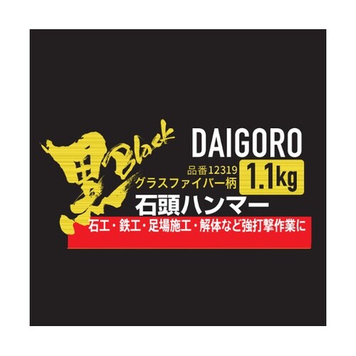 石工・鉄工・足場施工・解体など強打撃作業に。軽量かつ高強度なグラス柄の大五郎<黒>シリーズ。握りやすい形状と滑りにくいTPRグリップは抜群のフィット感。グリップエンドに落下防止ワイヤー用の通し穴付き。