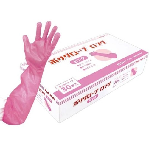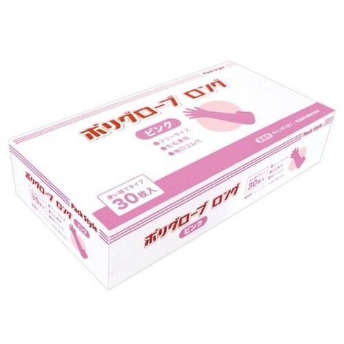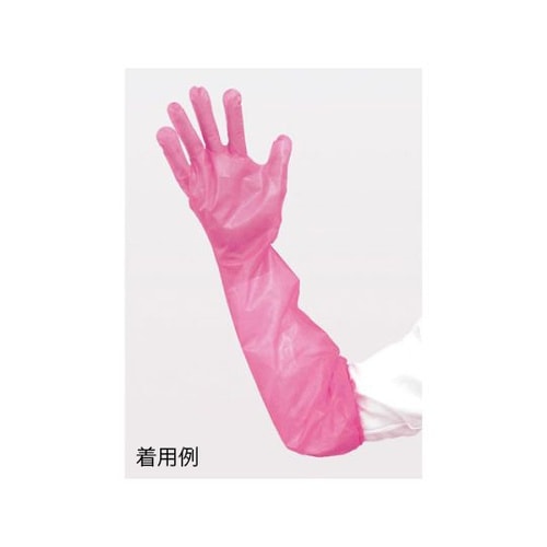 60cmのロングタイプ。左右兼用。異物混入対策に有効なブルーの輪ゴムを使用しています。手首部分から取り出しでき衛生的。 |