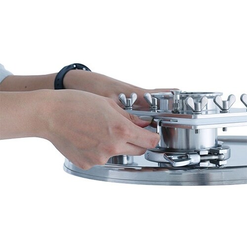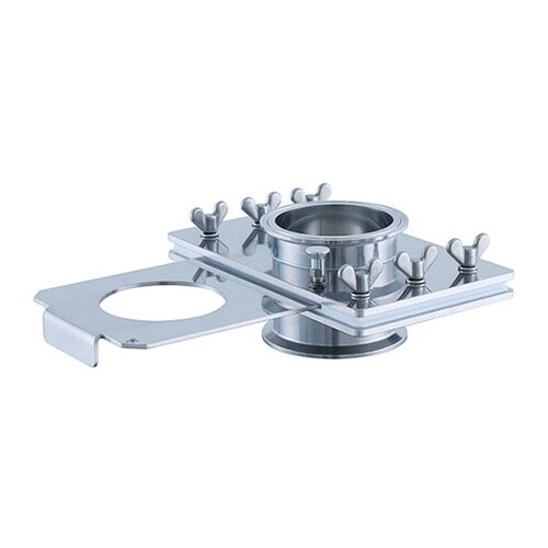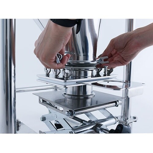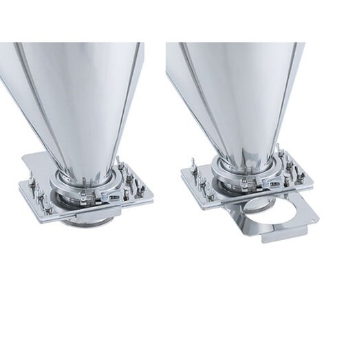 粉体、粒体の充填工程、原材料の投入工程などで活躍します。両側ともへルール接続なので、着脱が簡単です。PTFEパッキンにより、スムーズにスライドできます。バルブの誤開閉を防止するロック機能付きです。※1 |