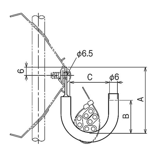 36B、69B、912Bや912WCとの併用で吊りボルトへのケーブル支持ができます。M□PHとの組み合わせでは、一般形鋼へのケーブル支持ができます。フック部は、ケーブル保護用のビニル被覆付き。 |