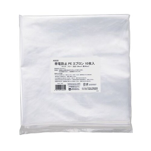 帯電防止効果のあるポリエチレン製のエプロンです。自己発塵が少ないため、低発塵性に優れています。 |