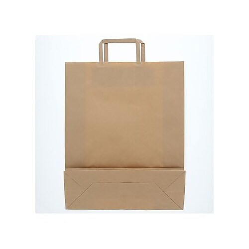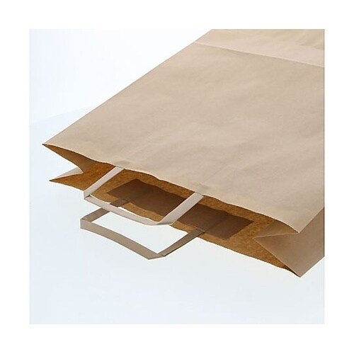 もっとも汎用性の高い、プレーンな白無地の手提げ袋です。未使用時には紐が飛び出ていないため、在庫スペースにやさしい平紐タイプです。幅と高さがほぼ正方形のオールマイティモデル。 |