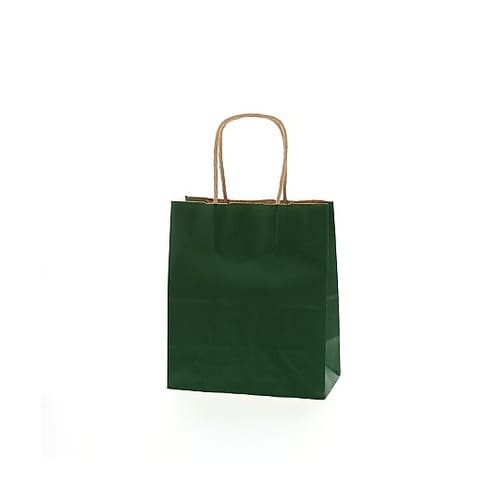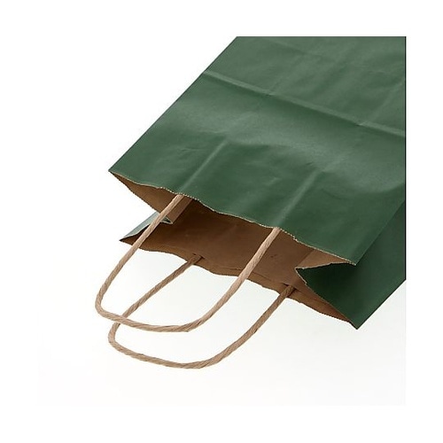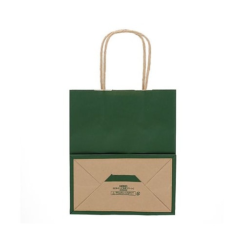 クラフト紙に緑ベタを印刷した手提げ紙袋です。色落ちを緩和させるために、上からニスを塗布しています。コンパクトな人気のサイズで、雑貨・文具・コスメ・菓子などに。 |