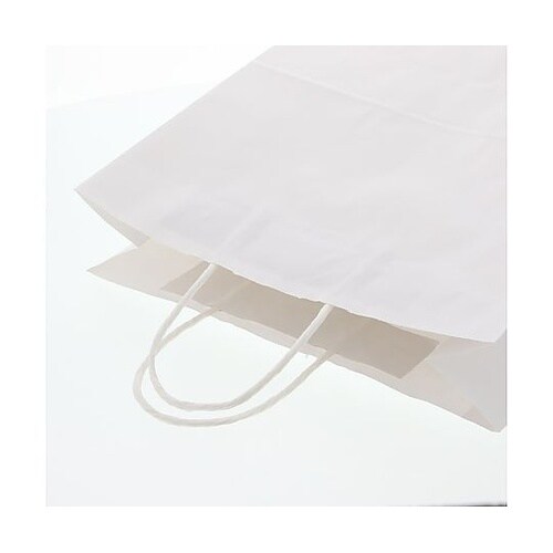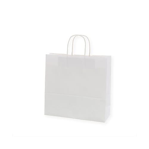 もっとも汎用性の高い、プレーンな白無地の手提げ袋です。表面に艶のない、晒クラフト紙を使用しております。幅と高さがほぼ正方形のオールマイティモデル。 |