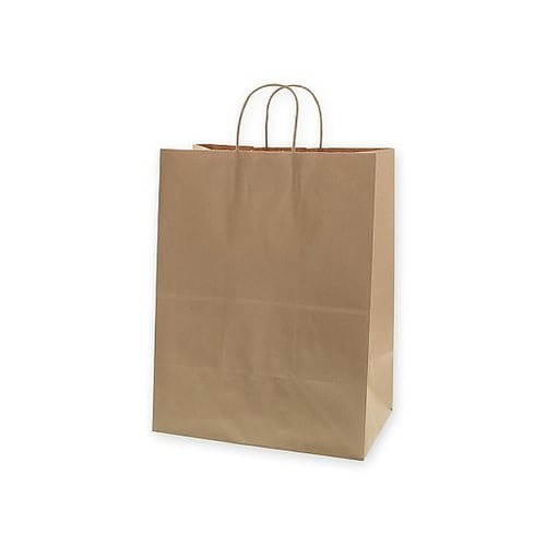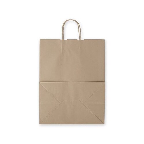 プレーンなクラフト紙の手提げ袋です。無地ものですので、さまざまな用途にご利用いただけます。高さがあり、マチもワイドなゆったりサイズ。 |