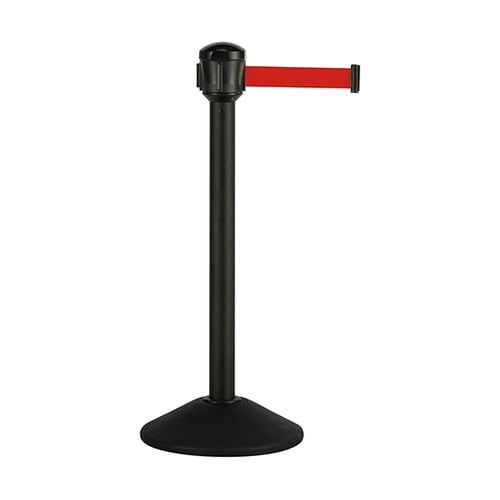 ベルトの耐光性・耐久性がアップ。屋外でも広範囲でご利用できるナイロンベルト製のベルトパーテーション。 |