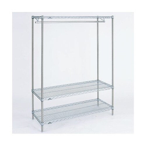 衣類を収納するのに便利なハンガー付きのシェルフです。 |