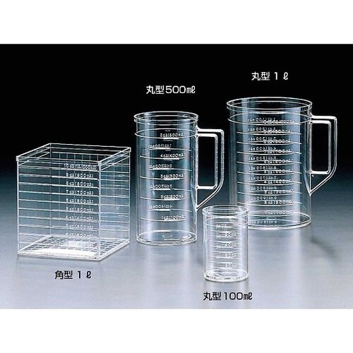 オール成型品のリットルます高精度の目盛でdlとmLの両方で表示ますに入れた場合の目盛(入目)、出した場合の目盛(出目)が左右についています丸型500mLと1Lは、同じ高さで、容量が2倍の設計目盛以上に |