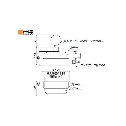 透明ポリカーボネート製のカバーで耐衝撃性、耐熱性にも優れたポリカデシケーターO−リングによるドライシール方式を採用し、グリース塗布の煩わしさを一掃PPプレート(φ140mm×3.2tmm)付きノズル径 |
