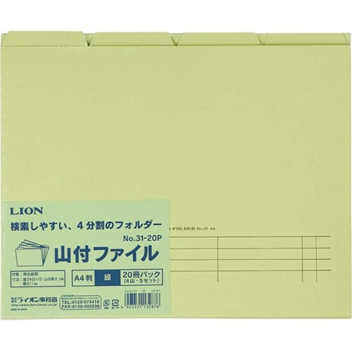 ライオン事務器 山付ファイル 緑 1パック(20冊入)  A052-5101